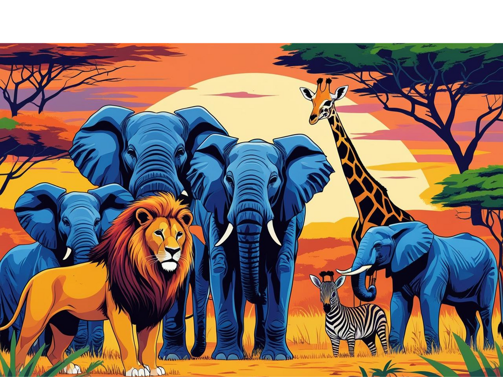 África – Animales de la sabana en un estilo divertido y colorido.